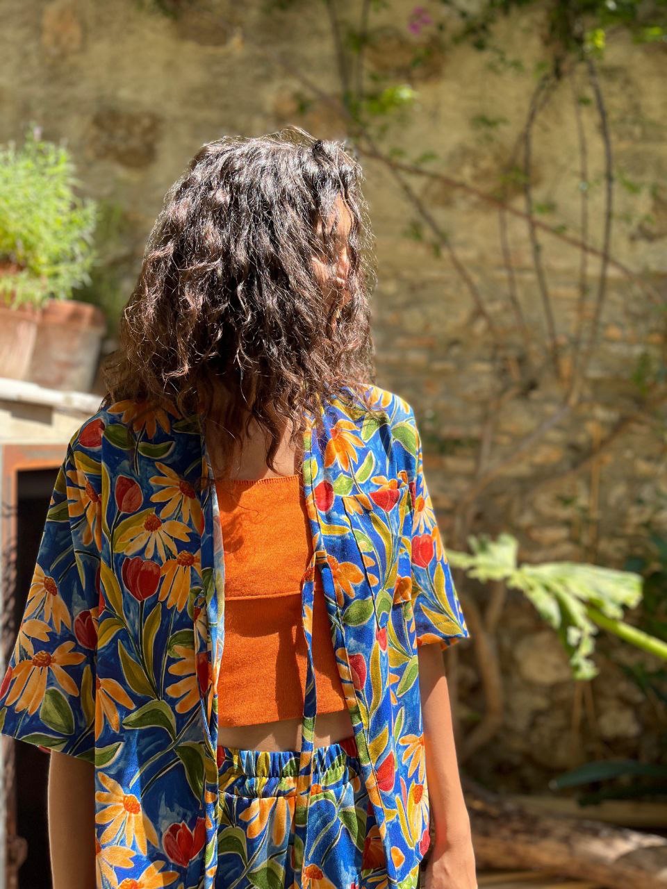 Kimono fet amb una tela florida i d’un texit molt suau.