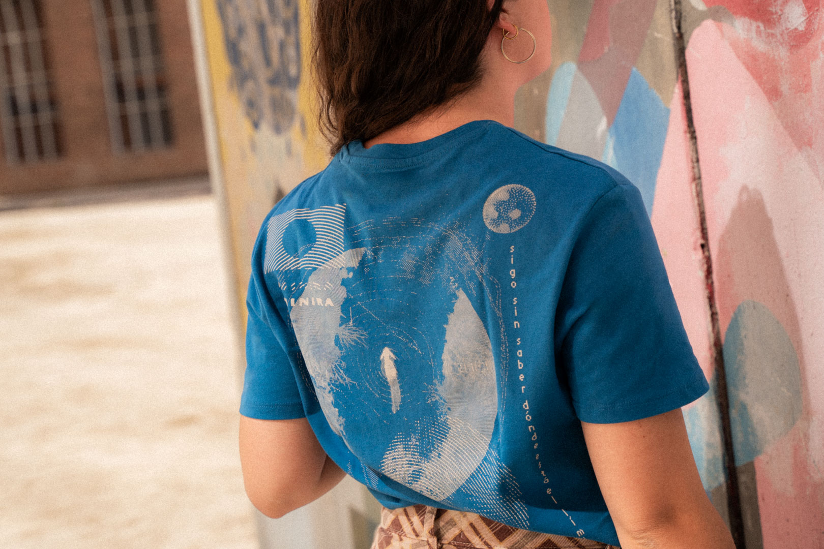 Samarreta de cotó serigrafiada. Disseny de la portada del single “Sigo Sin Saberā